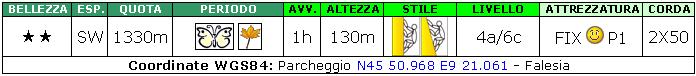 un po’ datata, con catene alle soste. Utile qualche dado/friend. Per la